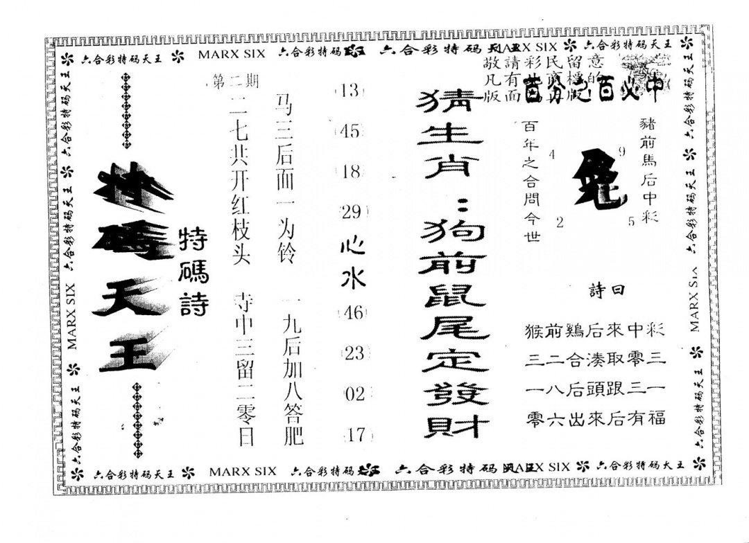 另版曾道人特码诗